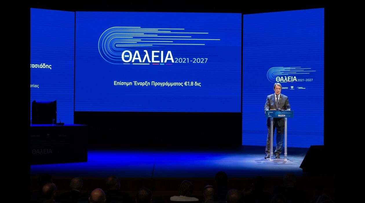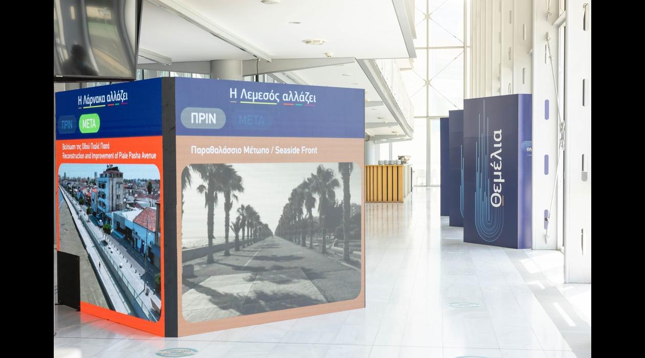 On Friday 08th of July 2022, we organized an event dedicated to the approval of the Political Cohesion Program "THALEIA 2021-2027", in the presence of the President of the Republic Mr. Nikos Anastasiades and the Council of Ministers. The Program was signed by the Commissioner for Cohesion and Reforms of the European Commission, Ms. Eliza Ferreira and the Minister of Finance, Mr. Konstantinos Petrides. For that specific and high caliber event, we created a new logo for "THALEIA 2021-2027" Program. We set 3 big led screens on THOK theatre’s stage and specially designed an exhibition which was set in the lobby. The event had big exposure since it was published the same day in all online and printed media and was also podcasted in all TV newscasts.