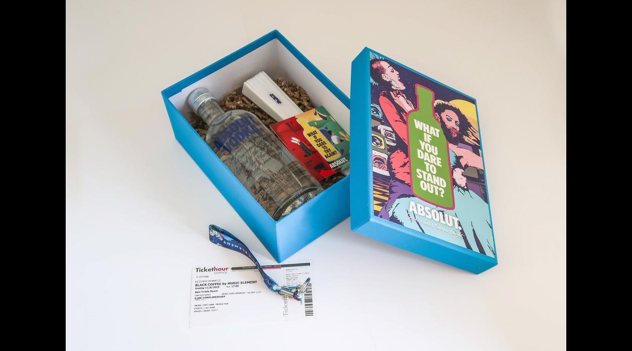 For our client Absolute Vodka we conducted a campaign with the name “Absolute Dare”. The finale of this campaign was marked by a big event which was carried out in 1 September, 2019. For the needs of the event and in order to gain the biggest exposure we prepared 100 “Product Drops” which were consisted of custom made boxes with illustrations that we created for the general Absolute Campaign , each one of them contained an “Absolut Party Kit” , in addition to guest passes for the event. Addressees of the presents were media executives and influencers of Cyprus, who through their personal social media accounts, gave huge exposure to the event.